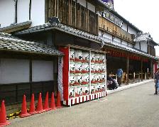 八千代座は、明治43年に建築の江戸時代の伝統的な芝居小屋の様式を今に伝える芝居小屋です。山鹿の商工会が劇場組合を作り、1株30円の株を募って建てたものです。 八千代座を設計し、工事監督をしたのは、回船問屋の主人で灯籠師でもあった木村亀太郎です。 建築には素人でしたが、研究熱心で東京の歌舞伎座や各地を見学、さらには上海に渡り洋式工法の長所も取り入れました。 昭和40年代になると庶民の娯楽が多様化し、八千代座は時の流れの中に取り残されていきます。閉鎖状態が続き老朽化が進む芝居小屋。朽ちかけていく八千代座に一番心を痛めたのは、華やかだった頃を知るお年寄りでした。老人会は、「瓦一枚運動」で募金を募り、屋根瓦を修復。この運動に刺激を受けた若者も、復興へ向けての様々な活動を始めました。その後昭和63年国重要文化財に指定されました。 平成2年から市民の手づくりで行われた「坂東玉三郎舞踊公演」では、明治の芝居小屋:八千代座が創り出す空間のなかで、華麗に舞う玉三郎丈の舞台のすばらしさに観客は魅せられ、この公演が復興への大きな追い風となり、八千代座の名前を全国に広めることになりました。 平成8年より平成の大修復・復原が始まり平成13年完了。 |